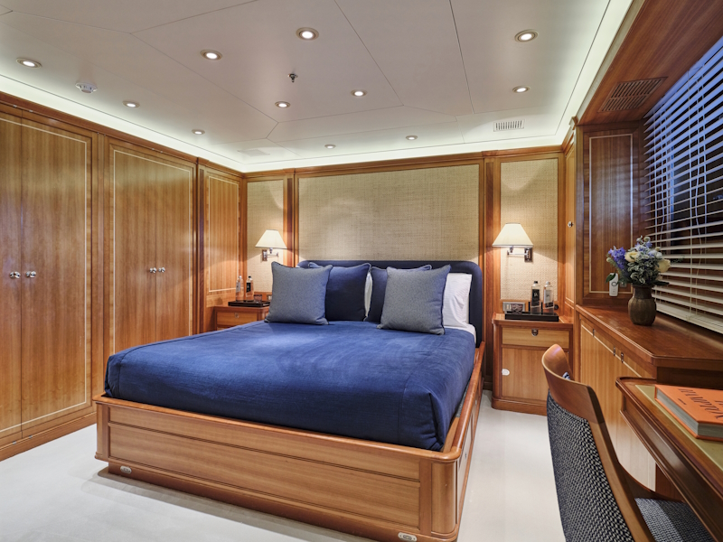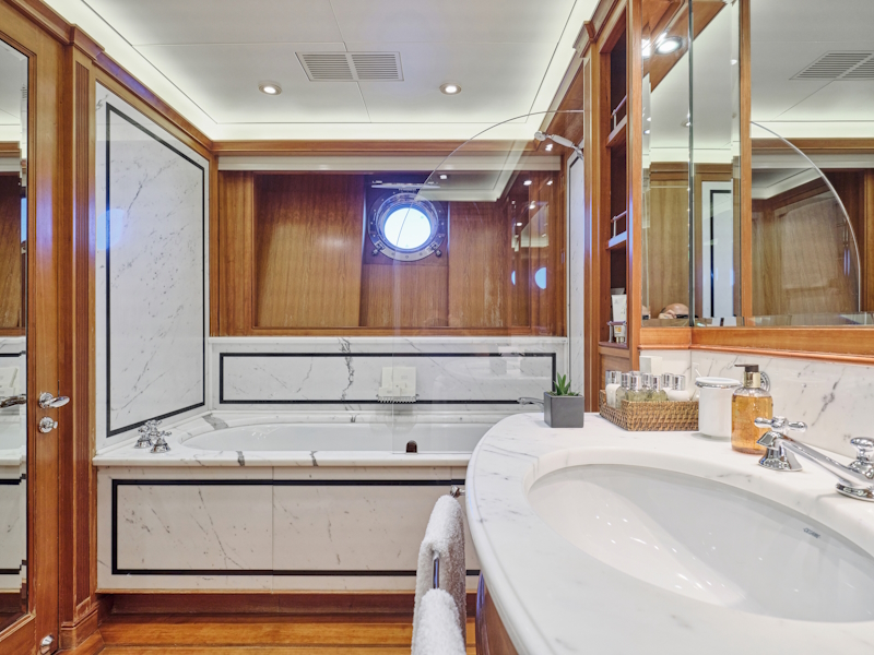 The elegant VIP suite features an en-suite bathroom with a porthole, allowing you to enjoy stunning views of the sea.